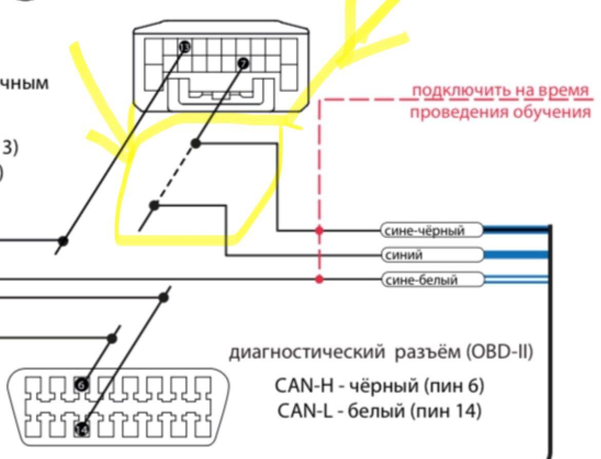 разобрал машину, за приборной панелью в разъёме нашёл розовый, по описанию, но вот там два синих. Добрался так же до obd разъёма. Не понял куда что подключить?