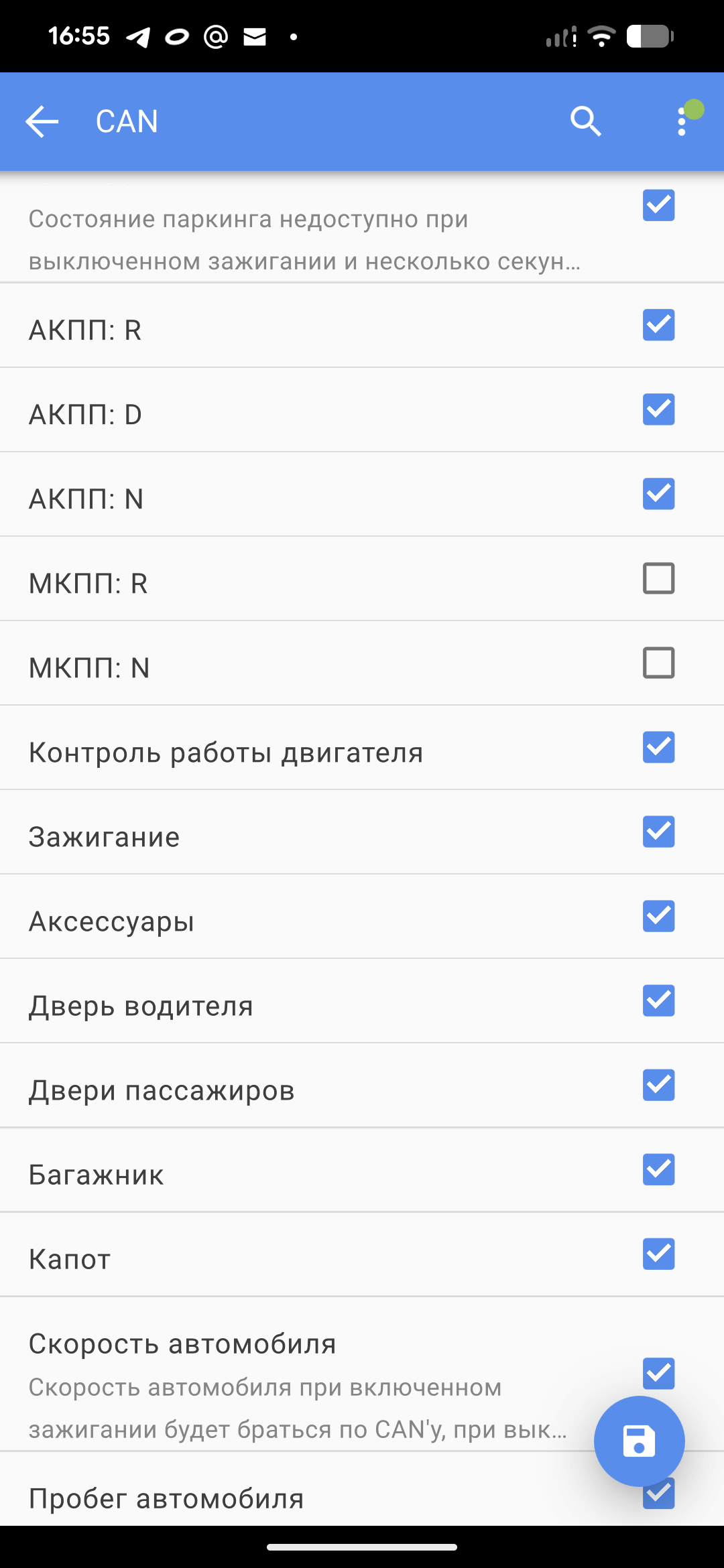 Обновил библиотеку CAN, не помогло. В настройках приложения естественно все выключено, в настройках прошивки вообще отсутствует возможность включить данную опцию, так как не поддерживается по can