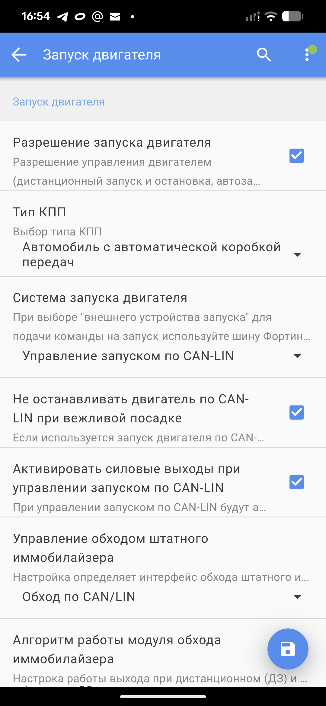 в настройках режим запуска через can/Lin, контроль работы двигателя по can.Настройки