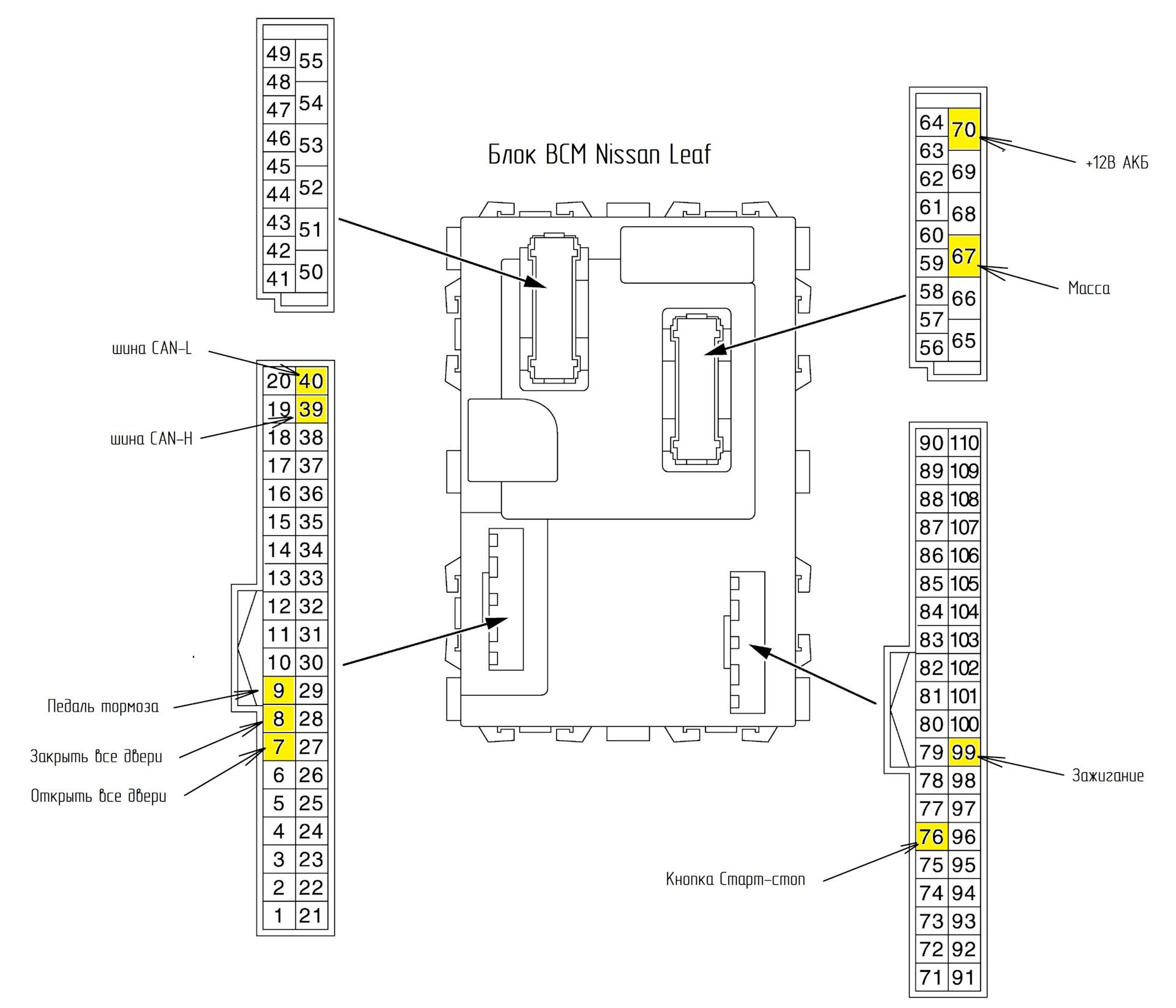 А где нашли 76 пин на BCM? Какому пину на схеме выше он соответствует? Ведь  ни в одном из разъемов нет больше 40 контактов...