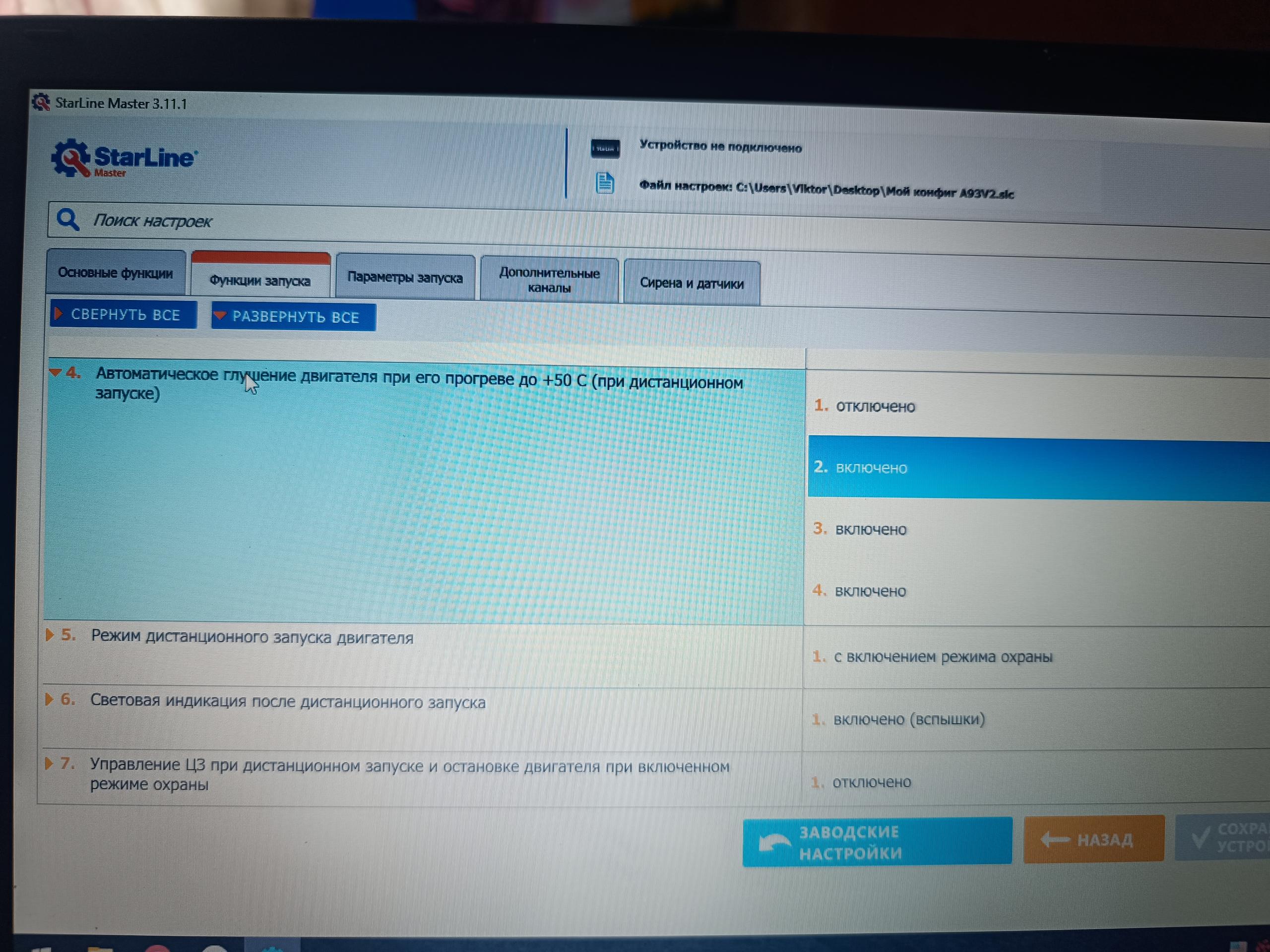 В А93 у каждой настройки есть 4 параметра. Ни больше, ни меньше.