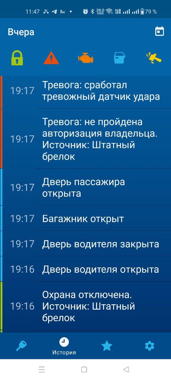 Записан к установщикам на 2.12, жду. Вчера была странная ситуация: открыл с брелока старлайн (с ЖК) машину, водит.дверь, положил вещи, закрыл дверь. Открыл багажник, открыл пассажирскую дверь (переднюю), начали типа предупредительных сигналов идти, потом начала работать сигнализация. Нажатия на брелок старлайн (с жк) ни к чему не приводил: мигал индикатор связи в верхнем левом углу. Штатный тоже странно отзывался (не понял, работает или нет). Отключить сирену получилось только с приложения. Доехал до дома, брелок старлайн стал работать. В чем проблема может быть, чтобы установщикам сказать, куда копать?1.jpg