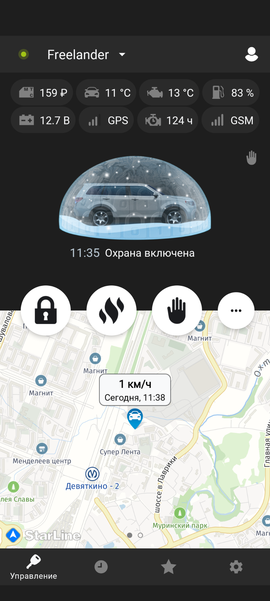 Добрый день. Ни снятие ни постановка на охрану через приложение не работают, если срабатывается сигнализация - так же отключить ее через приложение не могу, только штатный ключ, на котором радиус действия весьма ограничен.