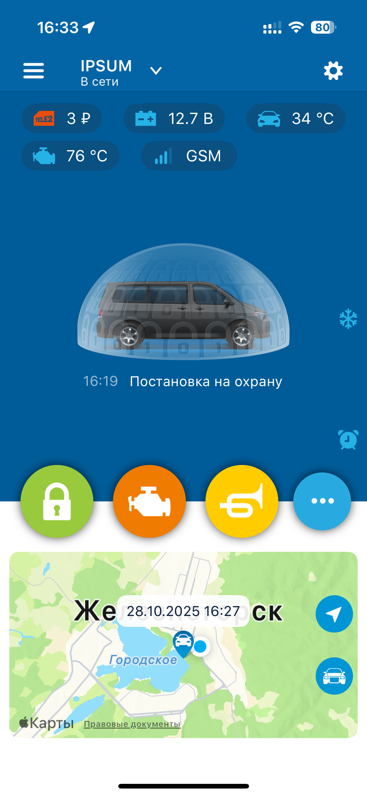 В программе на телефоне, и на сайте https://starline-online.ru/site/map баланс показывает 3 рубля