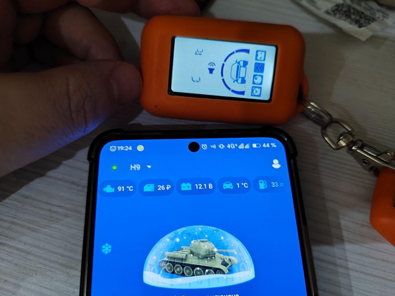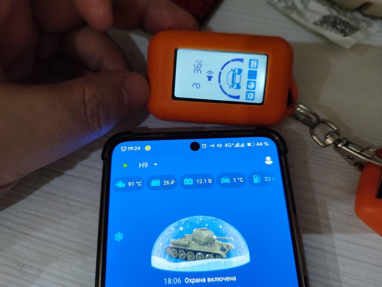 прикладываю два фото (температура в салоне - соответствует на брелке и в приложении; в двигателе (в приложении и на брелке)- видна разница 91 градус и 36 градусов (нажал на обновить в приложении, значение 91 градус не изменилось)